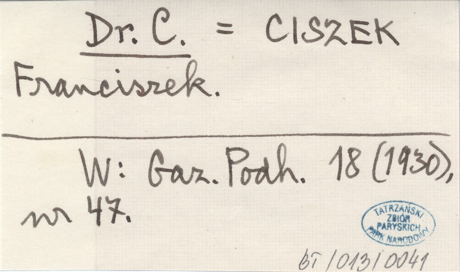 Dr. C. CISZEK Franciszek Gazeta Podhalańska 18 (1930), nr 47.
