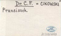 Dr. C. F. CIKOWSKI Franciszek