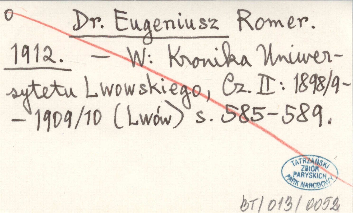 Kronika Uniwersytetu Lwowskiego, Cz. II: 1898/9-1909/10. Lwów , S. 585-589.