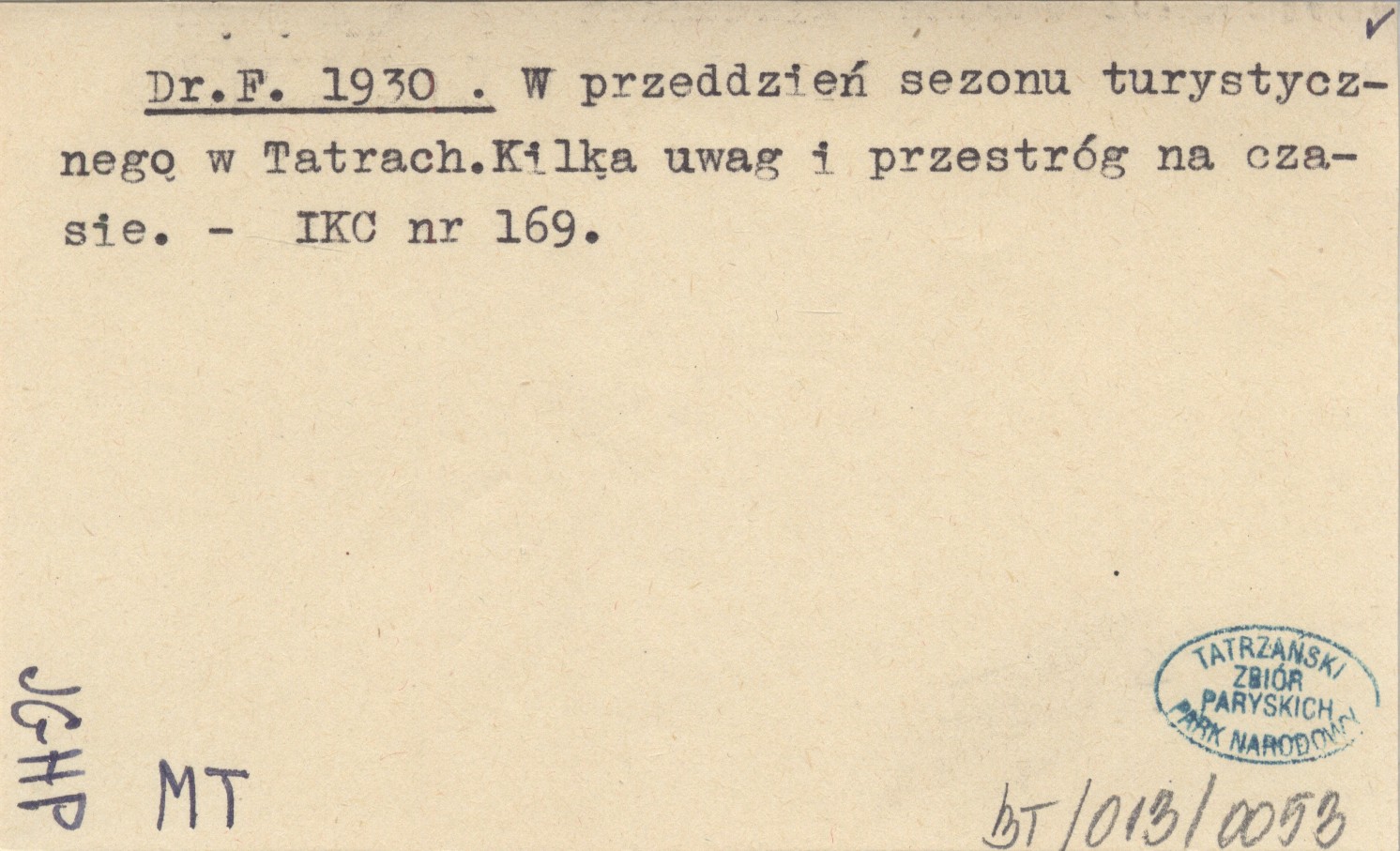 Dr. F. 1930 W przeddzień sezonu turystycznego w Tatrach. Kilka uwag i przestróg na czasie.