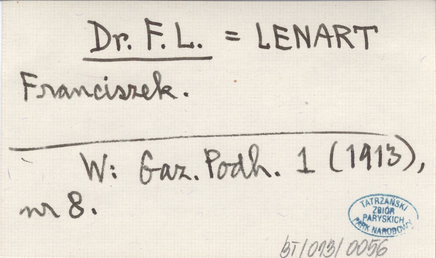 Dr. F. L. LENART Franciszek Gazeta Podhalańska 1 (1913), nr 8.