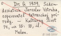 Dr. G. 1959 Sedemdesiatnik Jaroslav Votruba, ospevovateľ tatranskej prírody.