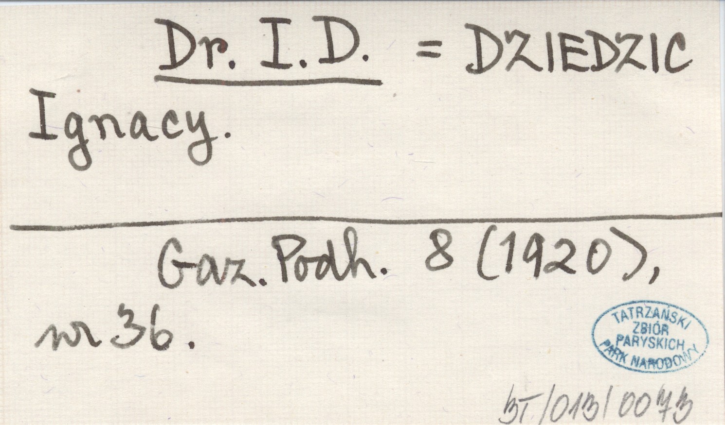Dr. I. D. DZIEDZIC Ignacy Gazeta Podhalańska 8 (1920), nr 36.
