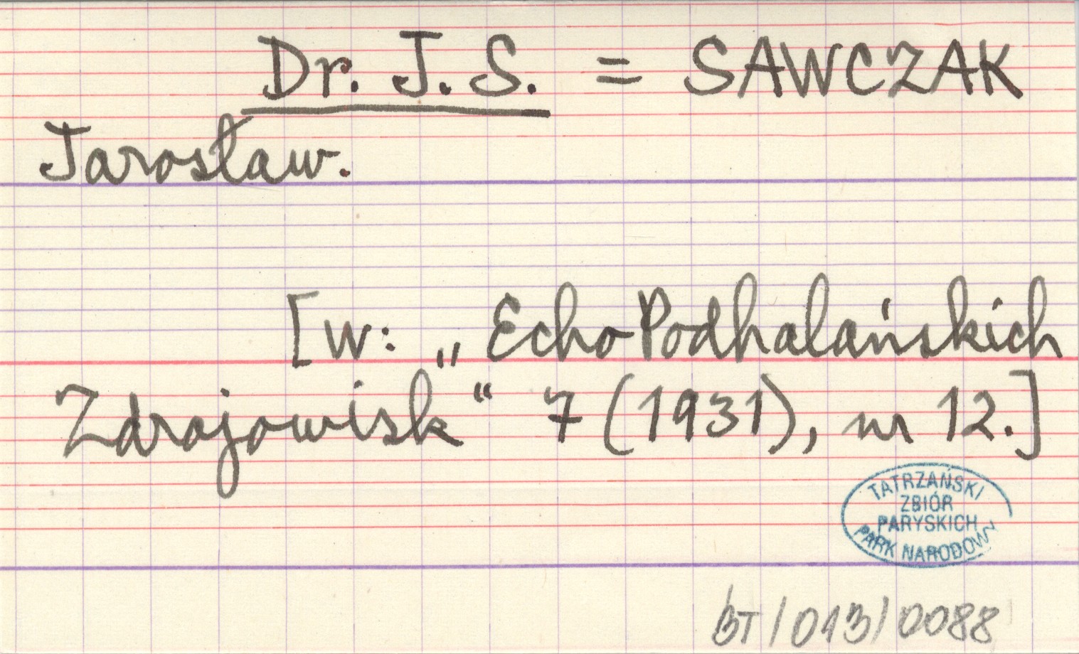 Dr. J. S. SAWCZAK Jarosław Echo Podhalańskich Zdrojowisk 7 (1931), nr 12.
