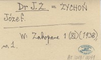 Dr J. Ż. ŻYCHOŃ Józef Zakopane 1 (XI) (1938), nr 1.