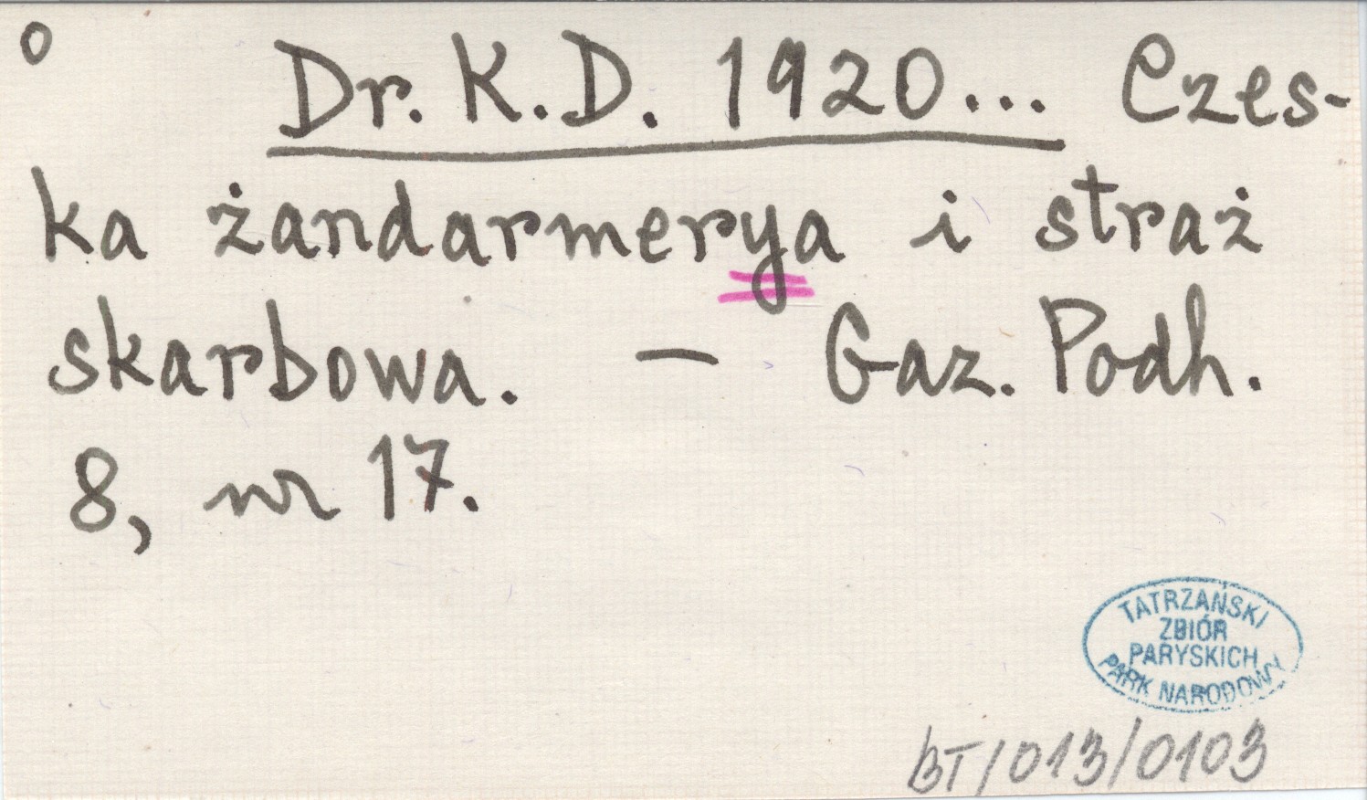 Dr. K. D. 1920... Czeska żandarmerya i straż skarbowa.