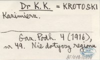 Dr K. K. KROTOSKI Kazimierz Gazeta Podhalańska 4 (1916), nr 49. Nie dotyczy regionu.