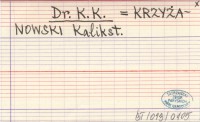 Dr. K. K. KRZYŻANOWSKI Kalikst