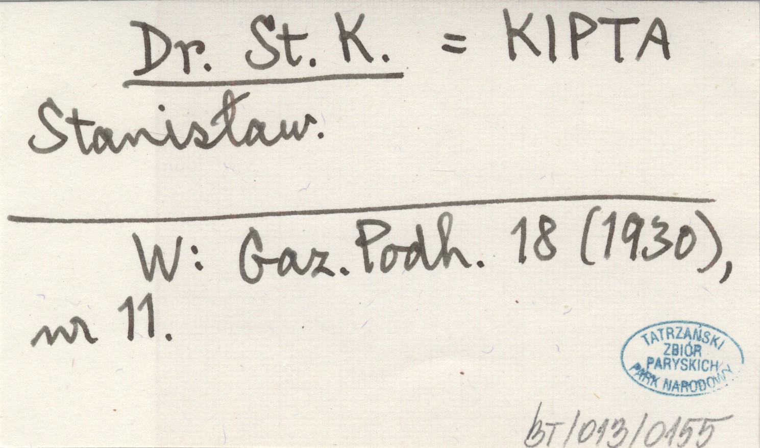 Dr. St. K. KIPTA Stanisław Gazeta Podhalańska 18 (1930), nr 11.