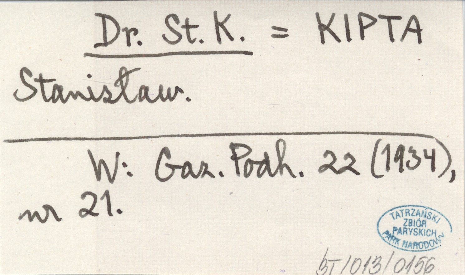 Dr. St. K. KIPTA Stanisław Gazeta Podhalańska 22 (1934), nr 21.