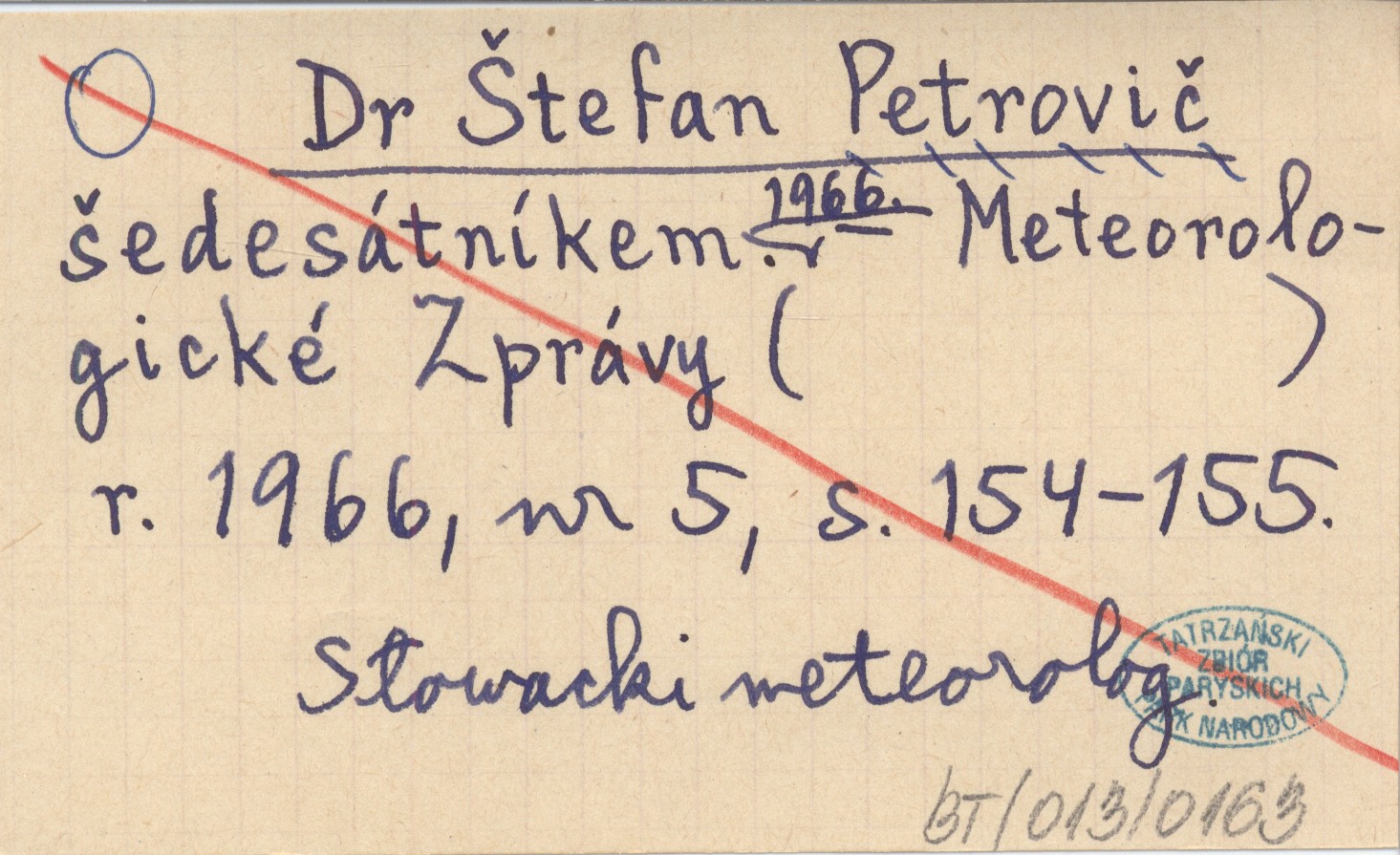 Meteorologické Zprávy, R. 1966, nr 5: 154-155. Słowacki meteorolog.