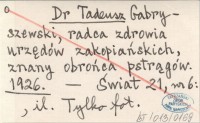 Dr Tadeusz Mischke, czł. zwierzchności Gminnej w Zakopanem. 1926