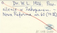 Dr. W. L. 1926 Przesilenie w Zakopanem.