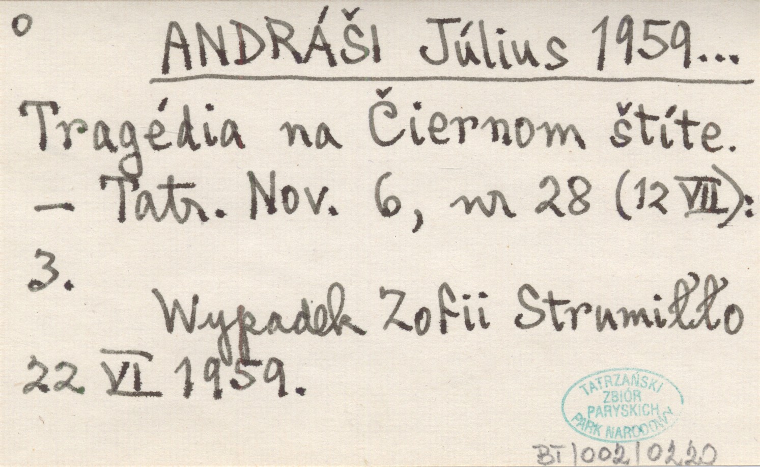 Tatranské Noviny, 6, nr 28 (12 VII): 3. Wypadek Zofii Strumiłło 22 VI 1959.
