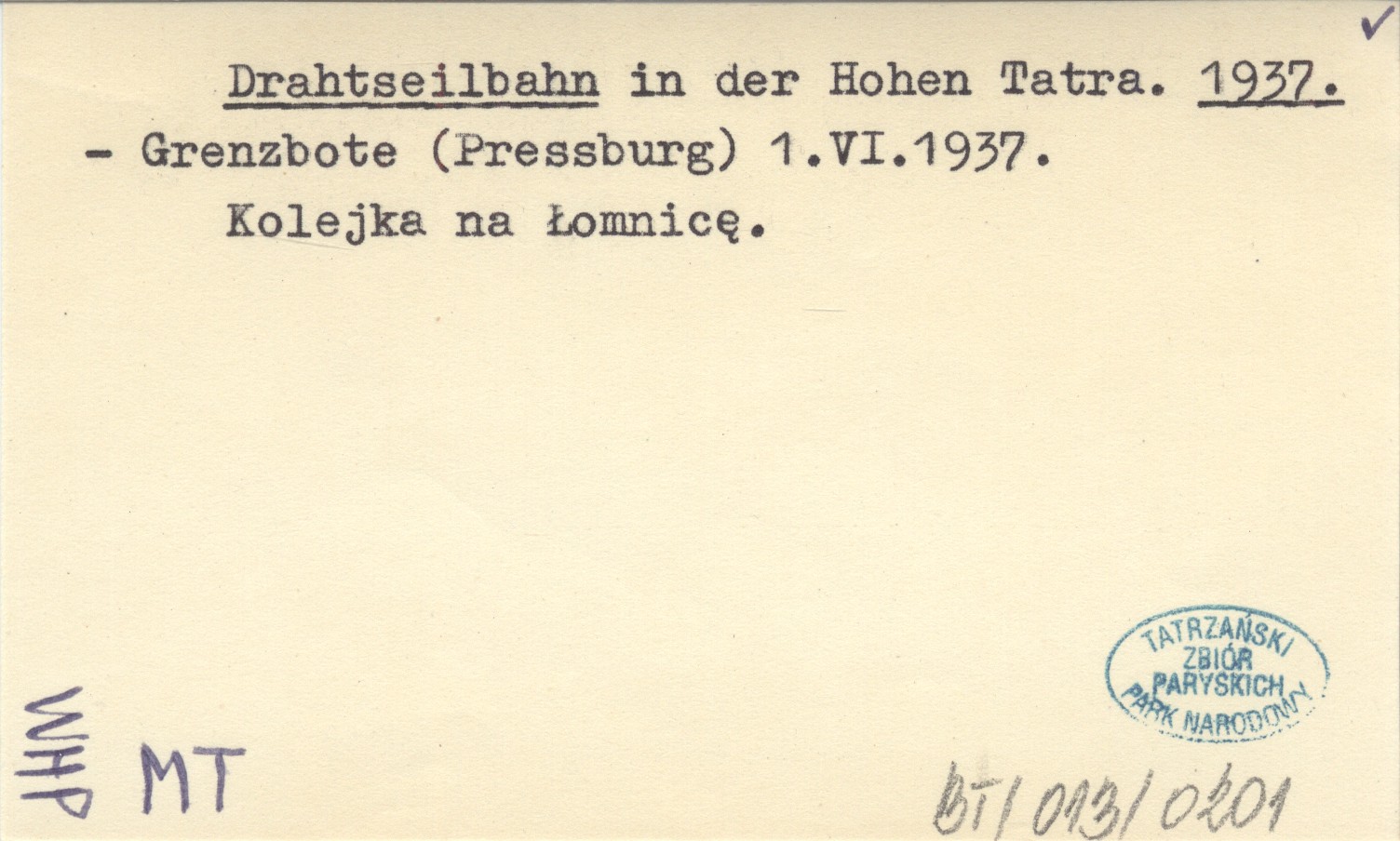 Grenzbote (Pressburg) , 1 VI 1937. Kolejka na Łomnicę.