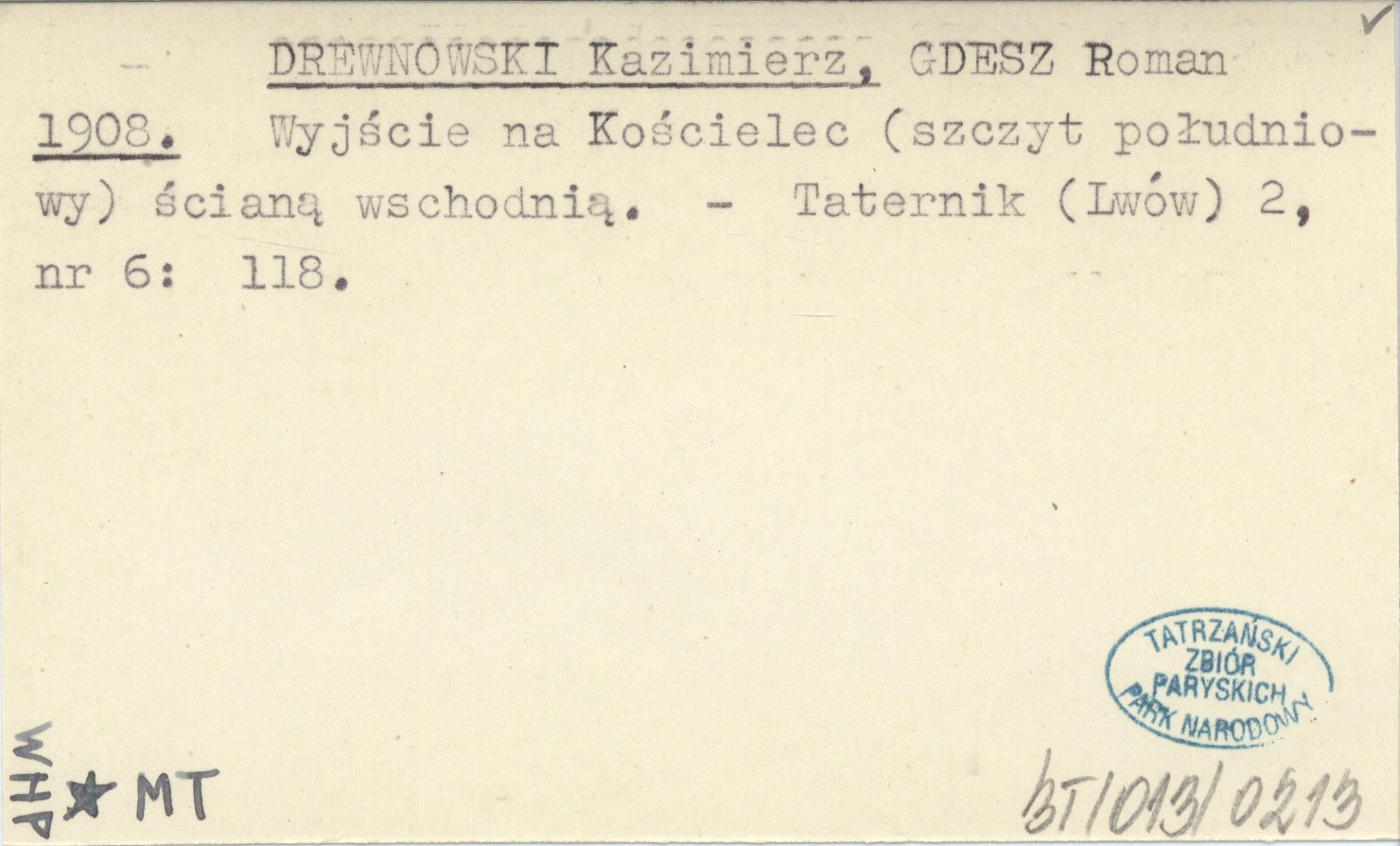 DREWNOWSKI Kazimierz GDESZ, Roman. ; 1908 Wyjście na Kościelec (szczyt południowy) ścianą wschodnią.
