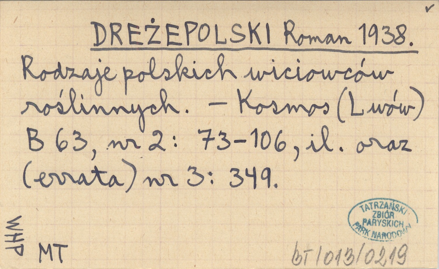 DREŻOPOLSKI Roman 1938 Rodzaje polskich wiciowców roślinnych.