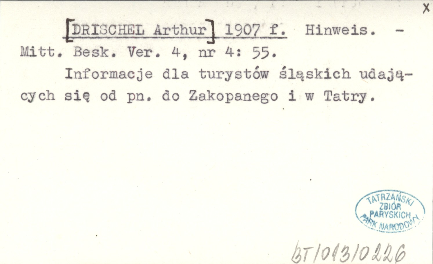 Mitt. Besk. Ver., 4, nr 4: 55. Informacje dla turystów śląskich udających się od pn. do Zakopanego i w Tatry.