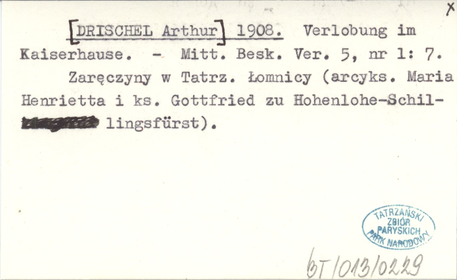 Mitt. Besk. Ver., 5, nr 1: 7. Zaręczyny w Tatrzańskiej Łomnicy (arcyksiężna Maria Henrietta i książę Gottfried zu Hohenlohe-Schillingsfürst).
