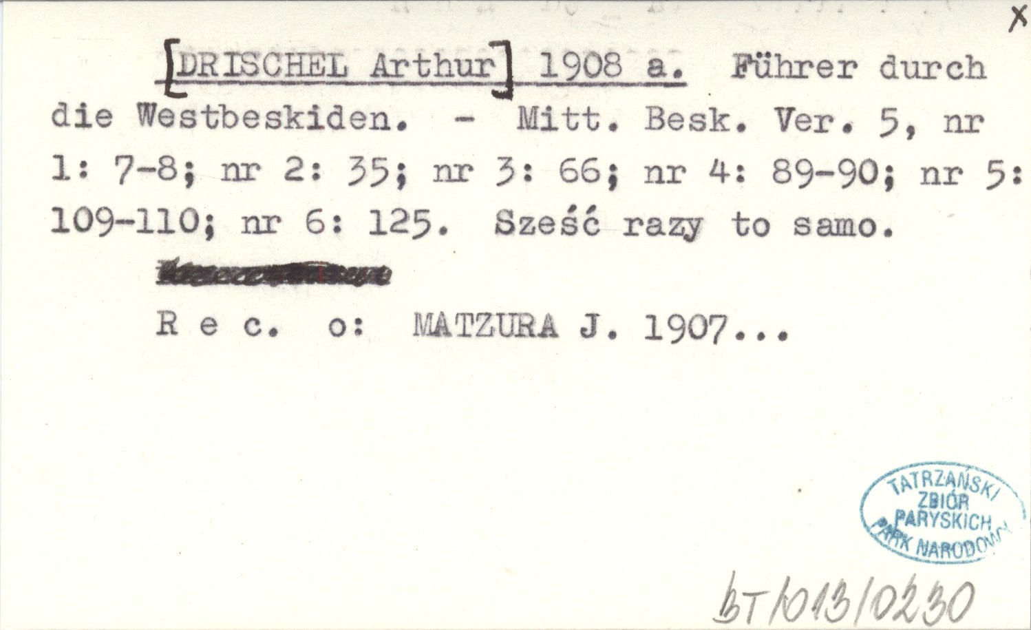 Mitt. Besk. Ver., 5, nr 1: 7-8 ; nr 2: 35 ; nr 3: 66 ; nr 4: 89-90 ; nr 5: 109-110 ; nr 6: 125. Sześć razy to samo. REC: MATZURA J. 1907...