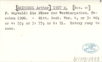 [DRISCHEL Arthur] 1907 c [Rec. o:] F. Maywald: Die Pässe der Westkarpathen. Teschen 1906.