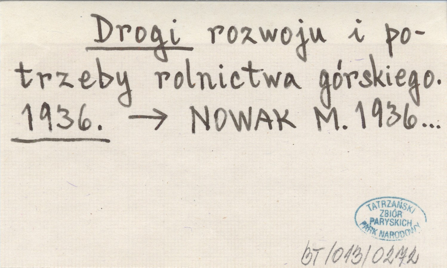 Drogi rozwoju i potrzeby rolnictwa górskiego. 1936