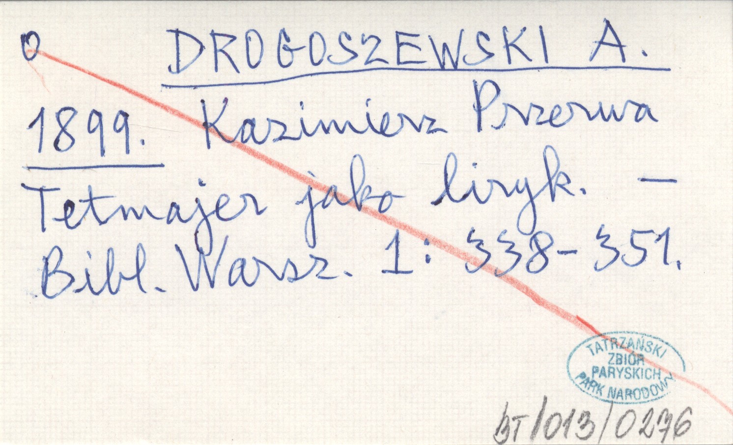 DROGOSZEWSKI A. 1899 Kazimierz Przerwa Tetmajer jako liryk.