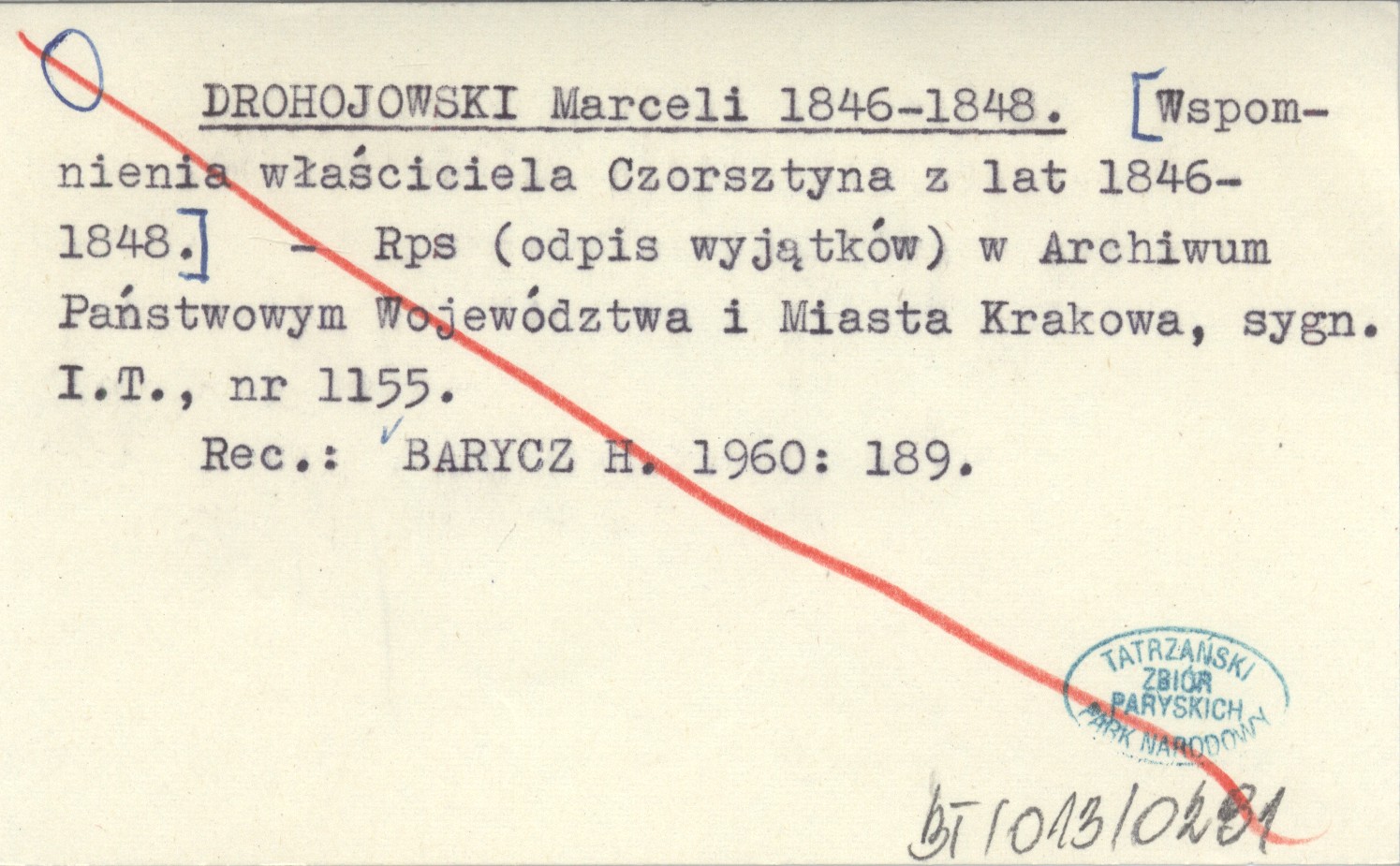 , Rękopis (odpis wyjątków) w Archiwum Państwowym Województwa i Miasta Krakowa, sygn. I.T., nr 1155. REC: BARYCZ H. 1960: 189.