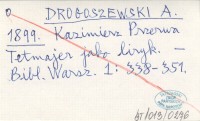 DROGOSZEWSKI A. 1899 Kazimierz Przerwa Tetmajer jako liryk.