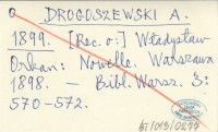 DROGOSZEWSKI A. 1899 [Rec. o:] Władysław Orkan: Nowelle. Warszawa 1898.