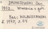 DROHOJOWSKI Jan 1902... Wrażenia z gór.