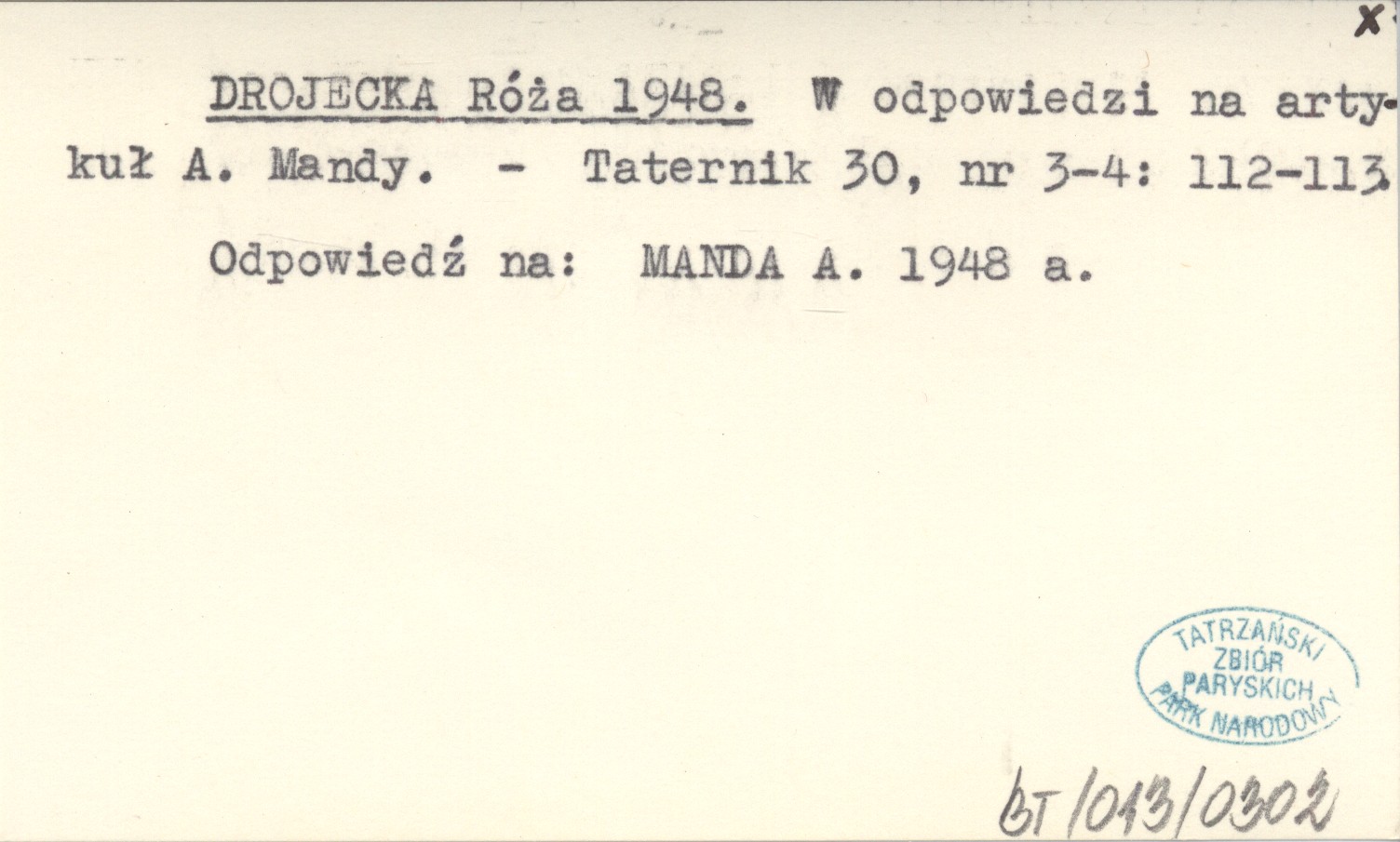 Taternik, 30, nr 3-4: 112-113. Odpowiedź na: MANDA A. 1948 a