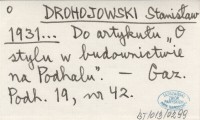 DROHOJOWSKI Stanisław 1931... Do artykułu "O stylu w budownictwie na Podhalu".