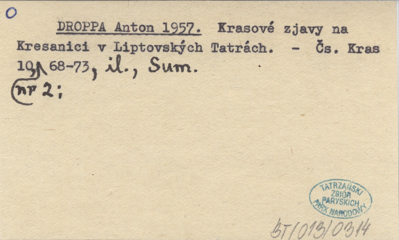 DROPPA Anton 1957 Krasové zjavy na Kresanici v Liptovskęch Tatrách.