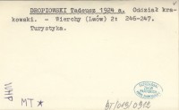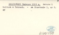 DROPIOWSKI Tadeusz 1919 a Natura i kultura w Tatrach.