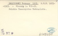 DROPIOWSKI Tadeusz 1923 P.T.T. 1873-1923.