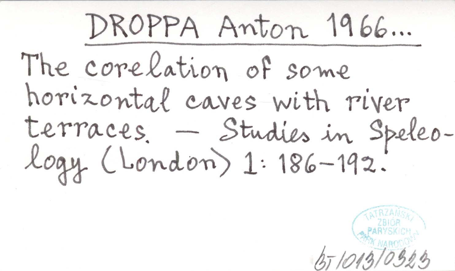 DROPPA Anton 1966... The corelation of some horizontal caves with river terraces.