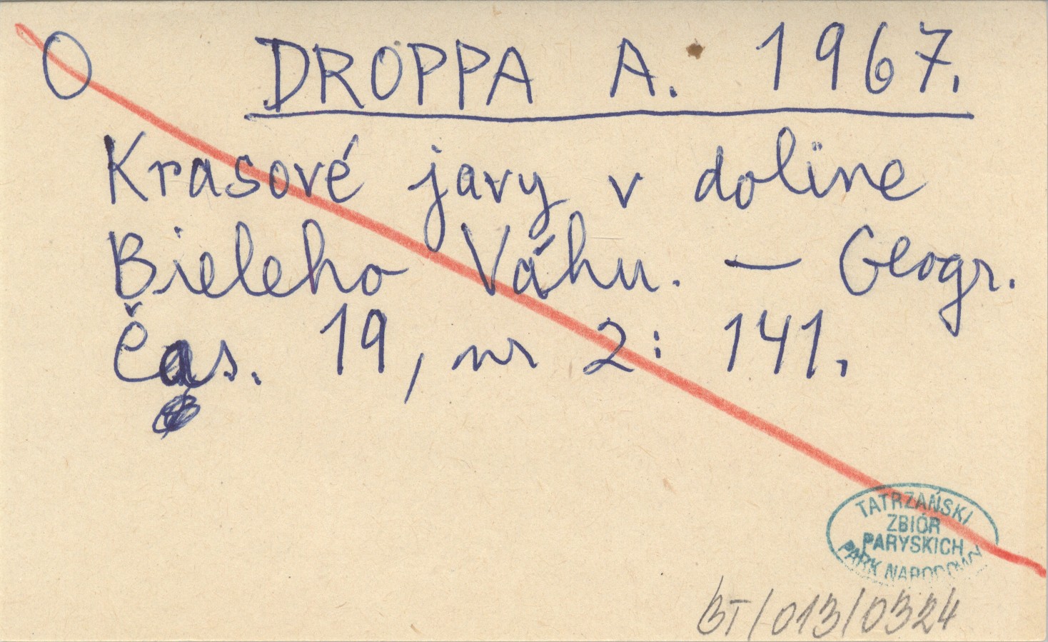 DROPPA A. 1967 Krasové javy v doline Bieleho Váhu.
