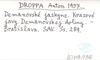 DROPPA Anton 1959 a Demänovské jaskyne a zaujímavosti krasu v okolí.