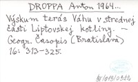 DROPPA Anton 1964... Výskum terás Váhu v strednej časti Liptovskej kotliny.
