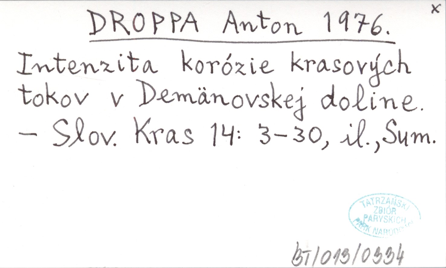 DROPPA Anton 1976 Intenzita korózia krasových tokov v Demänovskej doline.