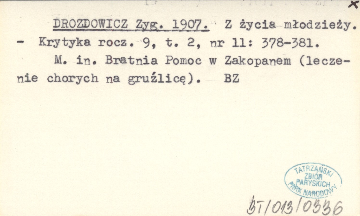 Krytyka, R. 9, t. 2, nr 11: 378-381. M. in. Bratnia Pomoc w Zakopanem (leczenie chorych na gruźlicę).