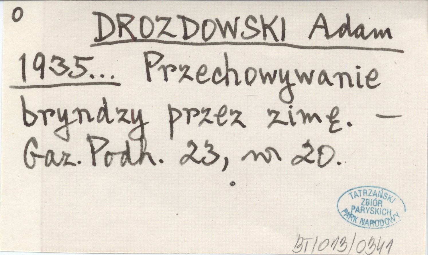 DROZDOWSKI Adam 1935... Przechowywanie bryndzy przez zimę.