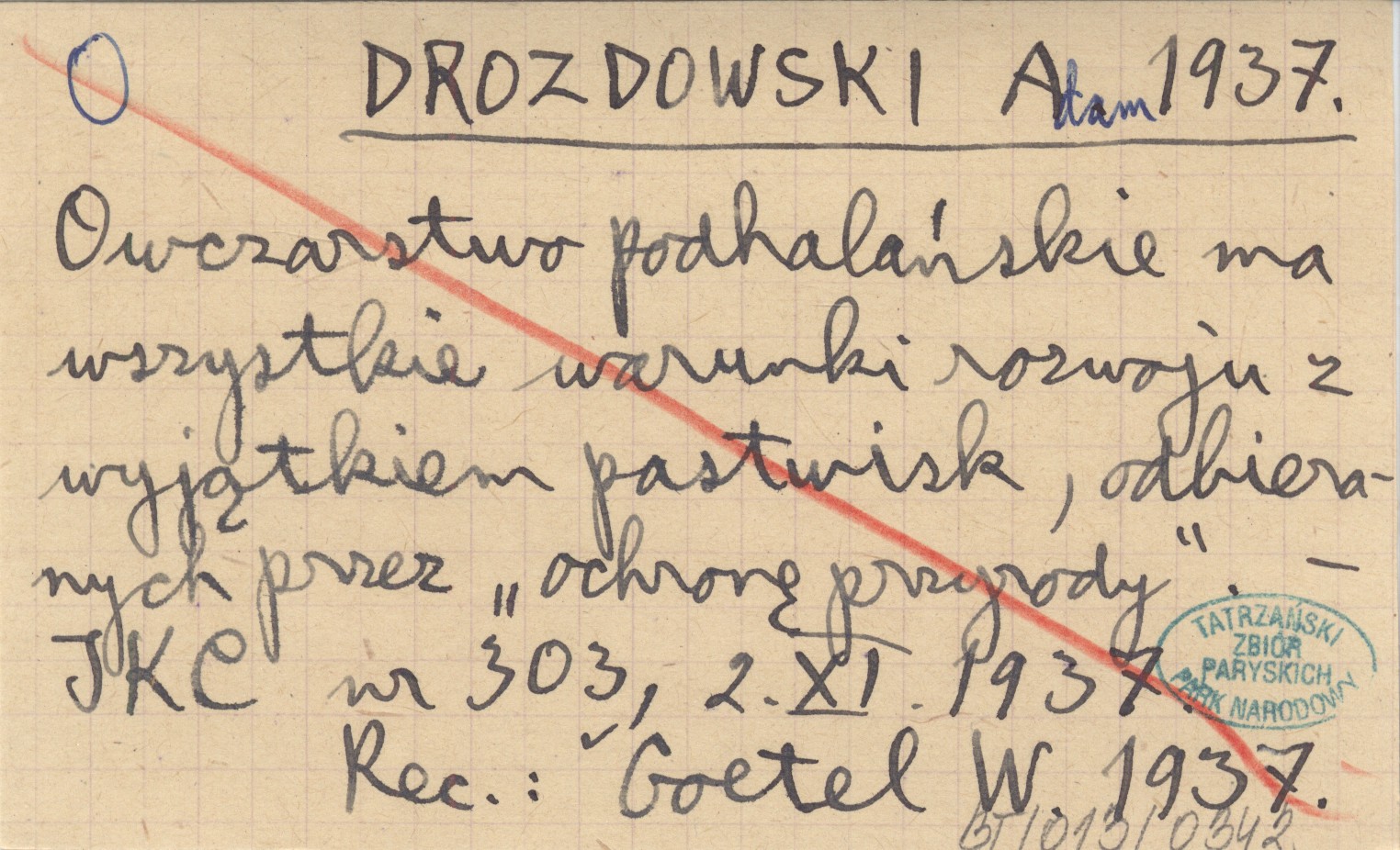 DROZDOWSKI Adam 1937 Owczarstwo podhalańskie ma wszystkie warunki rozwoju z wyjątkiem pastwisk, odbieranych przez "ochronę przyrody".