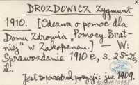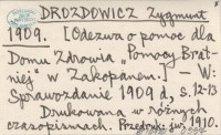DROZDOWICZ Zygmunt 1909 [Odezwa o pomoc dla Domu Zdrowia "Pomocy Bratniej" w Zakopanem.]