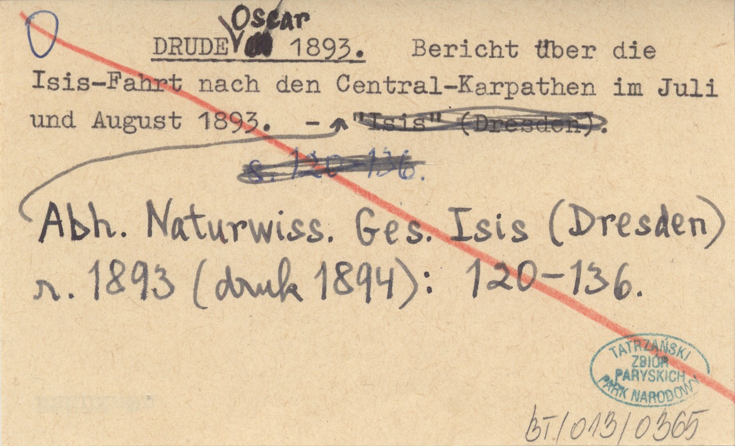 DRUDE Oscar 1893 Bericht über die Isis-Fahrt nach Central-Karpathen im Juli und August 1893.