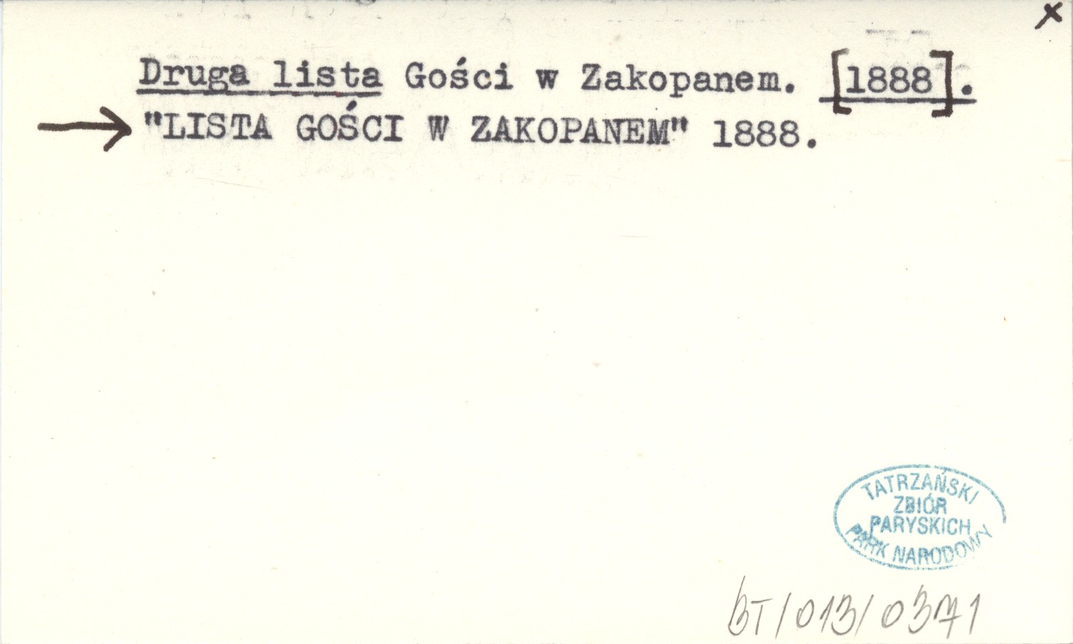 "LISTA GOŚCI W ZAKOPANEM" 1888