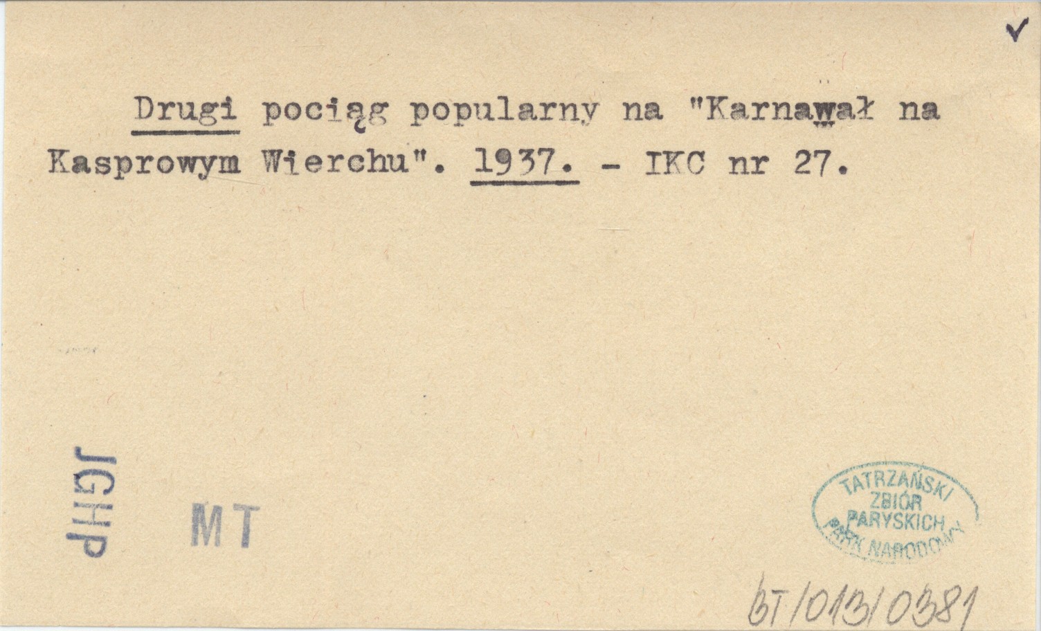 Drugi pociąg popularny na "Karnawał na Kasprowym Wierchu". 1937