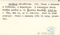 Družina Jánošíkova. III. Pisen o Adamowy a Ilčikowy, z Bognikoch. Z rukopisov Pavla Križku podáva A. H. [Andrej Halaša]. 1910 b