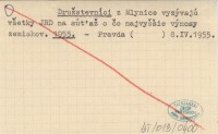 Družstevníci Z Mlynice vyzývajú všetky JRD na súťaž o čo najvyššie výnosy zemiakov. 1955